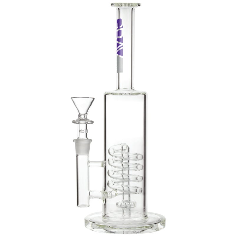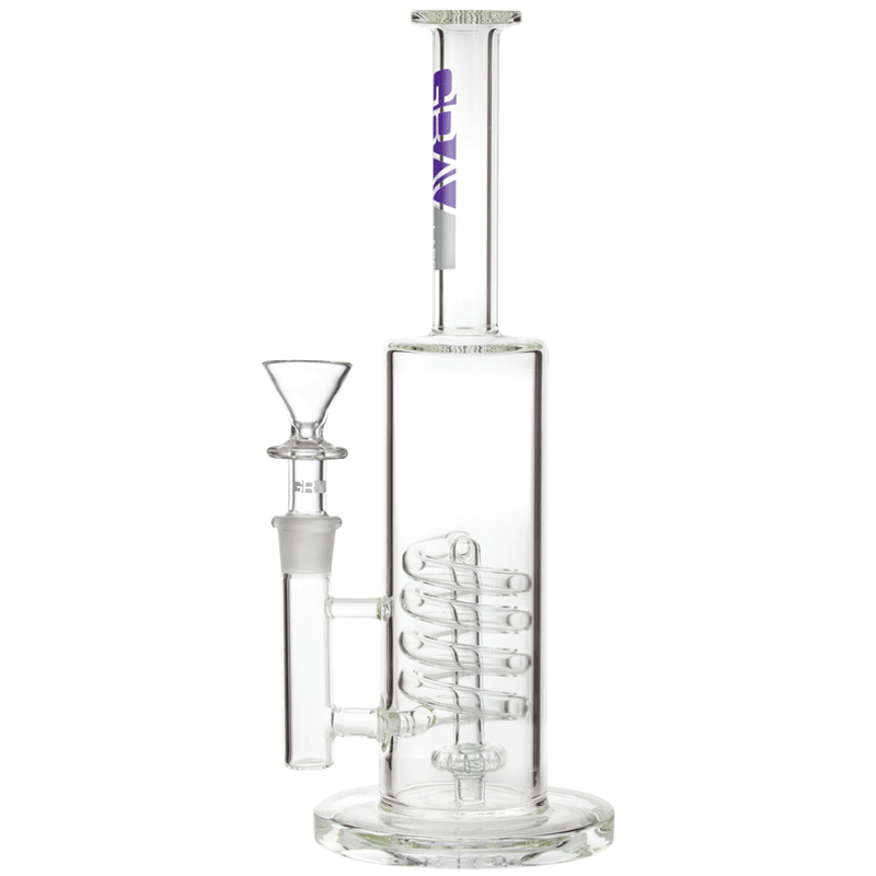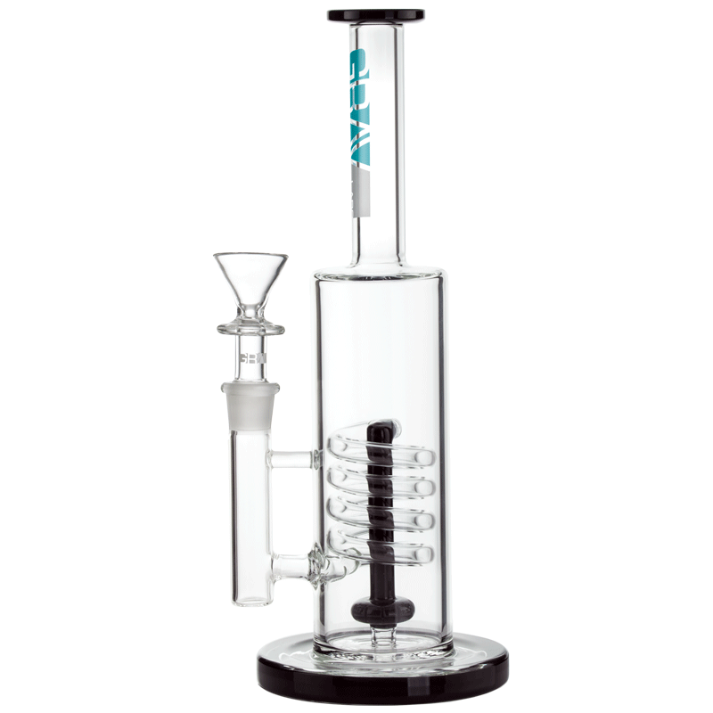 The 13'' Grav Labs Flare Stemless w/ Coil-Showerhead hits all the marks - super smooth percolation & beautiful visuals with the coil showerhead. Airflow is superb, and the thick glass with wide flared base keep the 13'' Grav Labs Flare Stemless w/ Coil-Showerhead stable on your table. The 14mm ground glass connection allows for future adaptability with other ground glass connections.