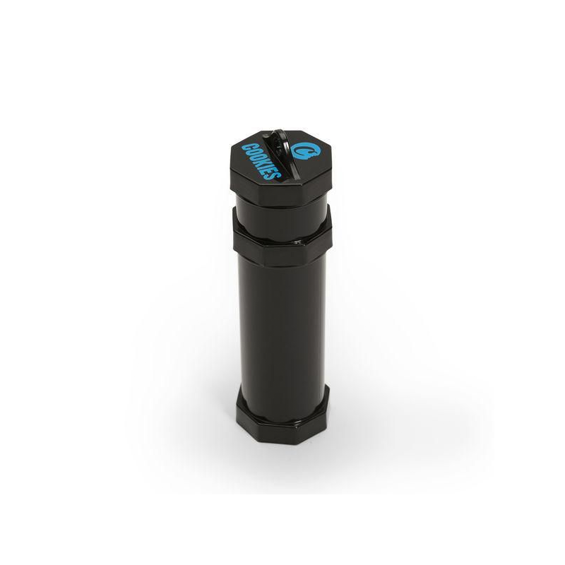 The Cookies Extendo Jar keeps your material fresh and your supplies secure. This air-tight dry herb container has a threaded top to trap odors, and a stackable design to make adding more storage easy. The top container comes with a silicone sleeve and has a plastic loop on the top of the lid for easy attachment to your bag.