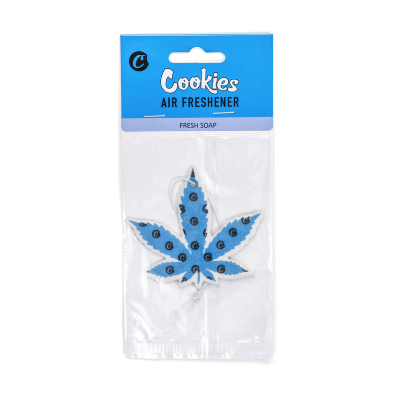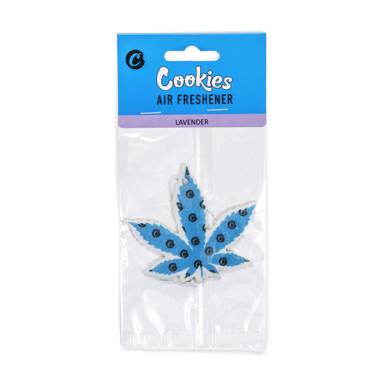 Keep unwanted odors from being smelled with the Cookies Leaf Car Air Freshener. Available in Vanilla, Lavender, and Fresh Soap the Cookies Air Freshener masks odors and features the iconic Cookies SF branding.
