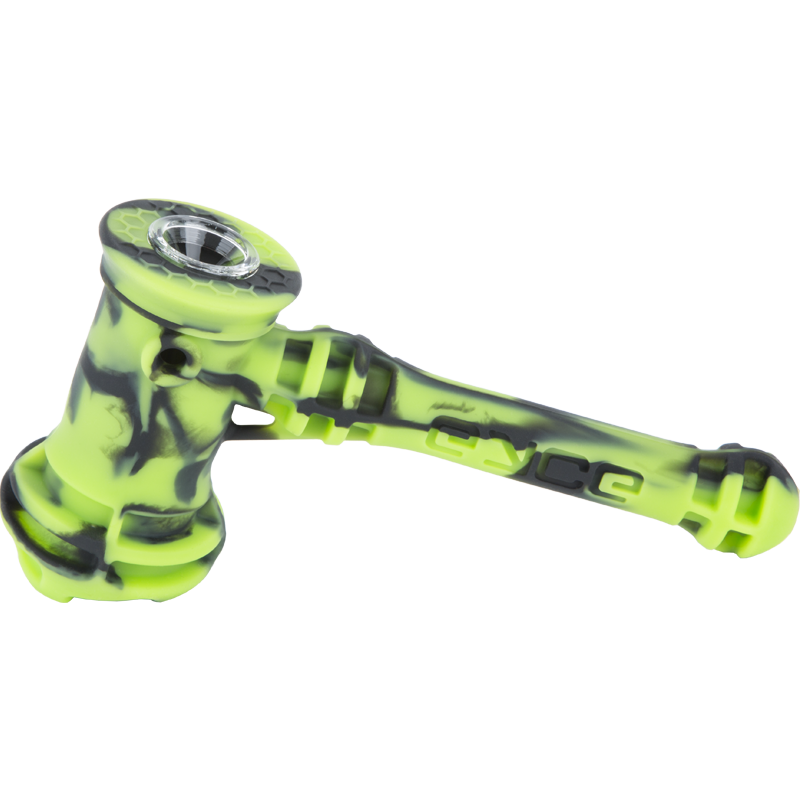 Always leaving your glass hammer at home for fear of breaking it? Do you prefer the taste of a glass bowl but live a super active lifestyle? The new unbreakable Eyce Hammer has you covered. Never worry about dropping your pipe or tossing it into your bag or purse when you're on-the-go. The Eyce Hammer is easily filled, emptied and cleaned via the removable top cap, and it comes with a poker tool and integrated/hidden stash container keep everything you need in one place. The removable top cap is interchangeable with the top cap on the Eyce rig for extra versatility. The removable borosilicate glass bowl is super-easy to clean and combined with the platinum-cured silicone deliver maximum flavor in an indestructible package. An integrated storage container sits in the bottom of the Eyce Hammer, and a poking/cleaning allows you to maintain your Hammer on-the-go.