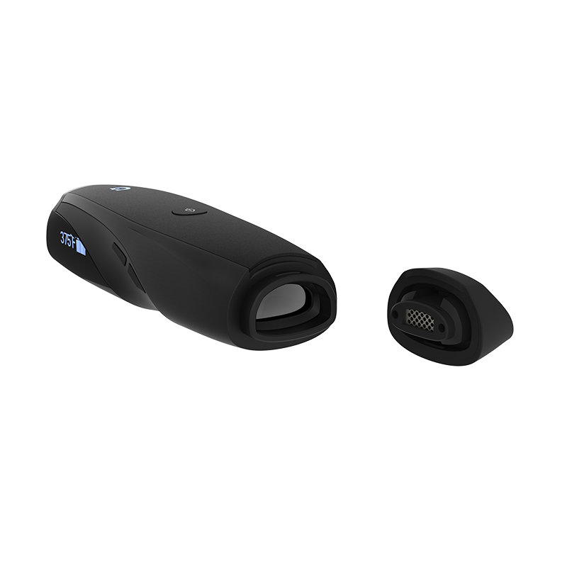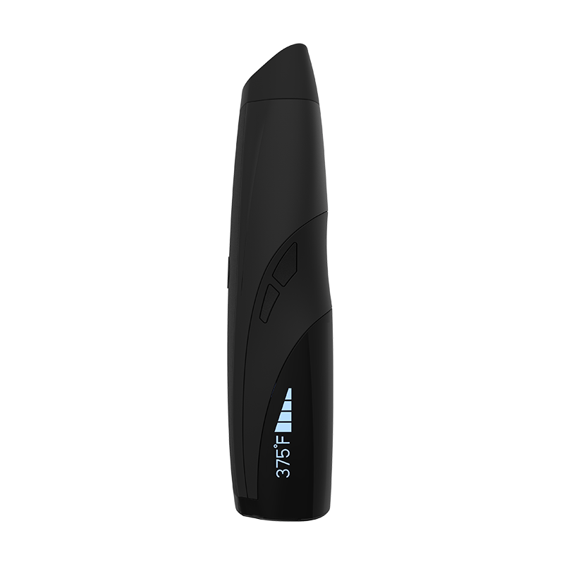 Fully charge the device (minimum of 3 hours). Remove the mouthpiece by gripping both sides firmly in one hand and lifting one side upward. Fully load the chamber with your preferred ground material. Power on the device by pressing the front panel button 5 times (press 5 times again to turn off). Use the side buttons to select your preferred vaporization temperature. Hold the front panel button down for one second, release, and wait. Once the LED display indicates that your selected temperature has been reached, you can begin to draw from the vaporizer.