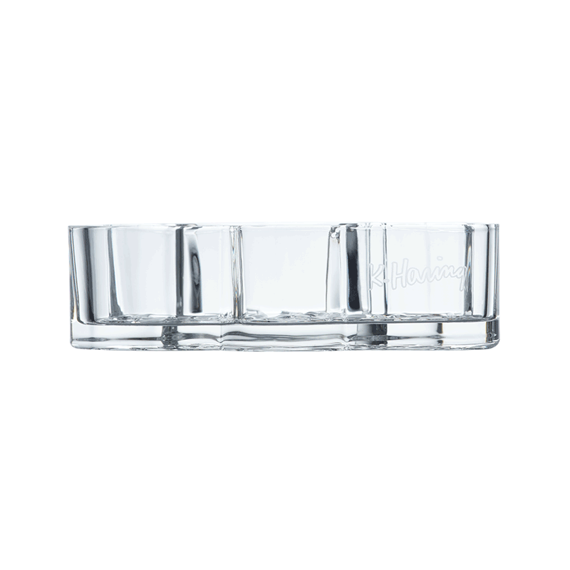 Paying homage to legendary street artist, Keith Haring, the K.Haring Bat Man Catchall blends creativity and high-caliber craftsmanship. Bold and radiating lines are press-molded into the crystal glass construction to form Haring’s “Bat Man” symbol. Contouring this heat-resistant catchall are six-millimeter thick walls that are perfect for housing smoking accessories and small items. Haring’s signature is laser-engraved into the exterior of this centerpiece.