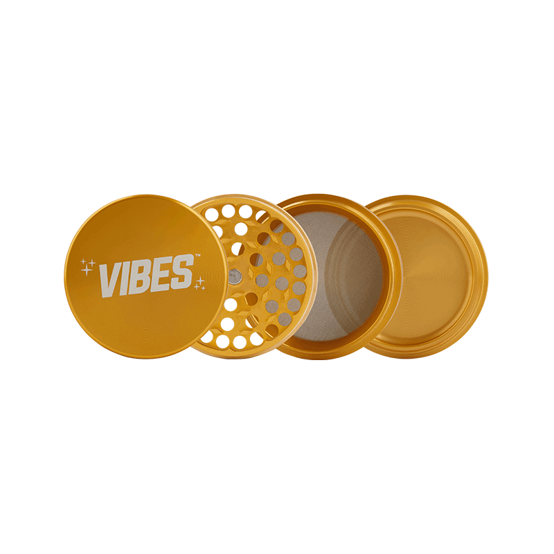 Milled from 6061 aircraft-grade aluminum, the lightweight and durable Vibes™ 4-Piece Grinder has been precision-engineered for a seamless grinding experience. Crafted with an anodized finish to prevent metal from flaking, this grinder comes equipped with optimized double-lead threading and a magnetic lid for easy loading.